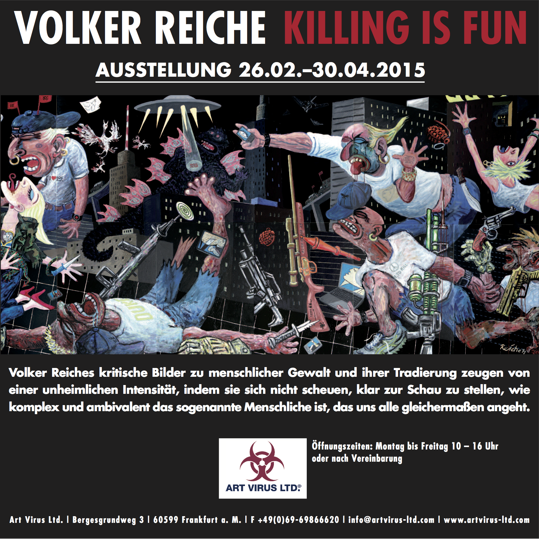 26.02.2015 — 30.04.2015Volker Reiche – Zwar ist vielen Reiche als Zeichner des „Strizz“ bekannt, jedoch nur wenige kennen sein malerisches Oeuvre. Seine Arbeiten sind geprägt von Sozialkritik, sie führen uns vor Augen die Angst vor dem Fremden, Wahnideen, Rassismus, religiösen Fanatismus oder anderen Formen von Autodestruktion. Die fiktive Wirklichkeit, die Reiche in seinen Bildern schafft, ruft Erinnerungen wach an aktuelle Ereignisse wie z.B. jüngst in Frankreich als auch an unsere eigenen Dämonen und Teufel.
