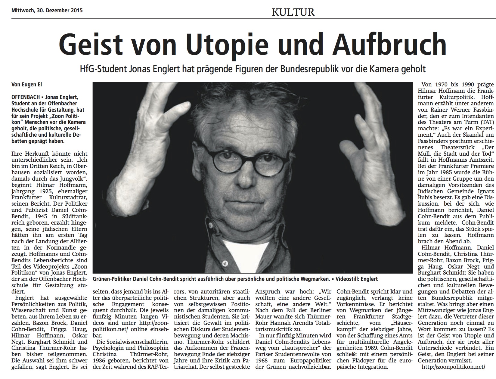 28.03.2016 Hessen Depesche Art Virus Ltd. und C. Michael Norton - die andere Seite des Dr. Michele Sciurba 30.12.2015 Offenbach Post Jonas Englert: Geist von Utopie und Aufbruch 07.12.2015 SCHIRNMAG Entschleunigt: Videokunst von Jonas Englert 18.07.2015 Frankfurter Neue Presse Volker Reiche: Der Bauzaun-Maler vom Museum 02.03.2015 RTL Volker Reiche: Vom Cartoonisten zum Gewaltkritiker 17.02.2015 Faust Kultur Der Künstler Volker Reiche - Über Gewalt und Wirklichkeit 19.01.2015 Journal Frankfurt Online Andrea Grosso Ciponte: Dust Novels in der Edition Faust - Boese-Nacht-Geschichten 27.10.2014 FAZ.net Andrea Grosso Ciponte: Geister, die wir nicht mehr loswerden wollen 18.10.2014 CULTurMAG Stafan Falke: La Frontera 24.6.2014 FAZ Net Mexikanisch-amerikanische Grenze. Hier herrscht die Kunst der Konflikte 10.06.2014 3 Sat Kulturzeit La Frontera: Ausstellungstipp 05.06.2014 FAZ La Frontera: Kunst der Konflikte 20.05.2014 Journal Frankfurt La Frontera: GRENZ WERTIG 18.05.2014 Vanguardia, Mexico "La Frontera": el Río Bravo aprende alemán 17.05.2014 taz.de LA Frontera: Ein gespaltenes Land. Künstler im Grenzgebiet Mexiko-USA. 06.05.2014 hr online La Frontera: Nicht nur Drogen und Gewalt 06.05.2014 Frankfurter Neue Presse La Frontera: Fünf künstlerische Grenzgänge 25.4.2014 Faust Kultur La Frontera: Ausstellungen, Podiumsdiskussion, Hintergründe 25.04.2014 laif - Agentur für Photos&Reportagen Stefan Falke: La Frontera 28.03.2014 BBC News Stefan Falke - Artists along the US Mexican Border 29.01.2014 SchirnMAG Volker Reiche 06.01.2014 New York Times Stefan Falke - Art and life on the border 06.01.2014 Frankfurter Neue Presse Online Hesse Faksimilebox - Hesses Werk in die Welt tragen 15.11.2013 Frankfurter Neue Presse Online Michael Kunert zu Gast bei Art Virus 11.11.2013 Faust Kultur Michael Kunert - Magischer Realismus, warum nicht 08.11.2013 3sat Kulturzeit Volker Reiches Graphic Novel "Kiesgrubennacht" 15.10.2013 FAZ Volker Reiche - Der Vater als Comicfigur 25.10.2013 Journal Frankfurt Volker Reiche - Strizz 08.05.2013 Vogue Deutschland Kunst-Kult: Artist & Model Myla DalBesio in Frankfurt 01.05.2013 Faust Kultur Trong Gia Nguyen - Thomas Mann im Hobbykeller 15.04.2013 Of the Minute Myla Moves - about Myla DalBesio Heft 2, 2013 art kaleidoscope Trong Nguyen - Art is a Battlefield. Über die denkwürdigen Objektideen von Trong Nguyen 13.04.2013 NY ART BEAT Ankalina Dahlem "Desire got struck by lightening" 06.04.2013 BERLINARTLINK Artist Trong Gia Nguyen plays in his “Mann Cave” 14.03.2013 Journal Frankfurt Maya Nishiyama - Die Japanische Seele 25.01.2013 Frankfurter Neue Presse Im Haus der Zukunft wohnen 21.09.2012 Journal Frankfurt Online Ankalina Dahlem zwischen Sachsenhausen und New York 03.09.2012 Faust Kultur Künstlerportrait Ankalina Dahlem 28.08.2012 Focus Online Ankalina Dahlem Buch und Ausstellungseröffnung – Die Sehnsucht hat der Blitz getroffen 18.06.2012 Frankfurter Neue Presse Art Virus Sommerfest - Kunst, Kultur und Prohibition 16.03.2012 Journal Frankfurt Occupy - Frankfurt vs. New York 16.03.2012 Journal Frankfurt Online Don't occupy your mind: Die Occupy-Bewegung in Bildern 15.03.2012 Faust Kultur Occupy New York Frankfurt – Eine Bewegung, die keine sein dürfte 16.03.2012 Frankfurter Neue Presse Occupy aus Künstlersicht 16.03.2012 Frankfurter Rundschau Occupy - Ruhe im Getöse 15.03.2012 Die Welt Online Occupy - Zirkus inmitten des Zoos 15.03.2012 Welt Kompakt Occupy - Zirkus inmitten des Zoos 15.03.2012 Bild "Occupy" Buch und Bilder über Protest-Bewegung: Zwischen Frankfurt und New York 15.03.2012 RTL Hessen Occupy-Ausstellung 29.02.2012 Frankenpost Lutz R. Ketscher - Begonie in der Falle 26.09.2011 Faust Kultur Hans Jürgen Freund - Die Sensibilität der Malmaschine 09.06.2011 Journal Frankfurt Art Virus Sommerfest - Opel-Lenker 31.05.2011 Bild Frankfurt Die Reillys entspannen in Sachsenhausen 23.05.2011 Glanz Magazin Michele Sciurba, Sammler und Galerist, besucht von „Glanz“ in der neu eröffneten Galerie „Art Virus“ in Frankfurt am Main 20.11.2010 Gießener Allgemeine Zwei Gießener gestalten Intimität des Raums 18.11.2010 Frankfurter Neue Presse Einfach klingeln - und Kunst im Privaten schauen 04.09.2010 Bild Frankfurt „Art Virus“ macht Kanzlei zur Galerie 04.09.2010 Frankfurter Neue Presse Ein Abend, fünf Einladungen